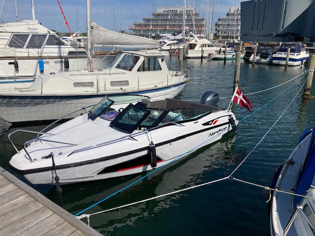 Bimini mit Camperverdeck | Decksbelag ab Werk (S-Deck Soft Floor) | Vorruestung fuer 2. Batterie | Scheibenwischer Steuerbord | Sonnenpolster Cockpit | Cockpit-Tisch | Vorbereitung Bugstrahlruder | Kocher | 12-Volt Steckdose | Badeplattform | Badeleiter | Feuerloescher | Ankerkasten | elektrische und manuelle Bilgenpumpe | Mooring Kit (4 Fender, 4 x 6 Meter Tauwerk, Anker | portabler Gaskocher | Kompass | LED Schalter | Navigationsbeleuchtung | Flaggenstockhalterung und Flaggenstock